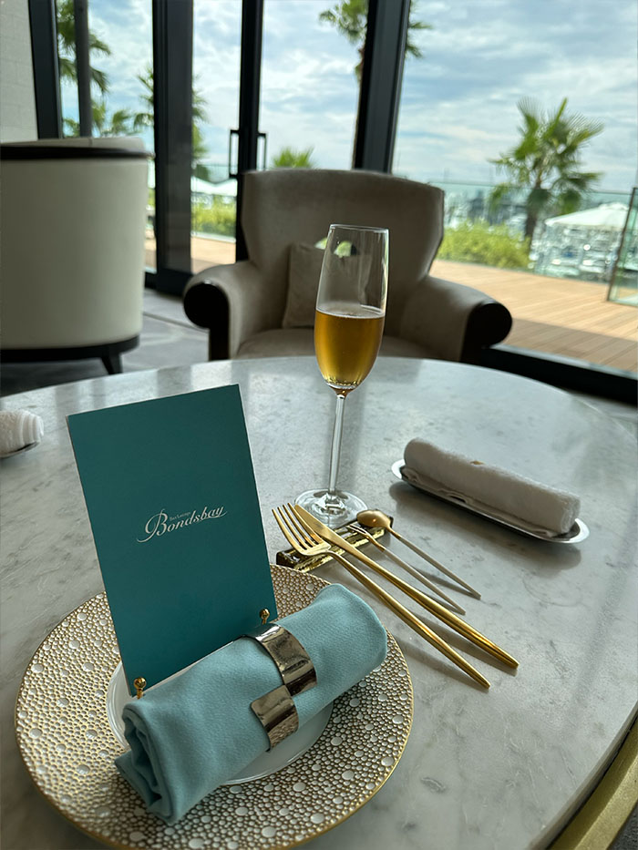 大きな窓から煌めく水面にヨットが揺れる景色が広がり、