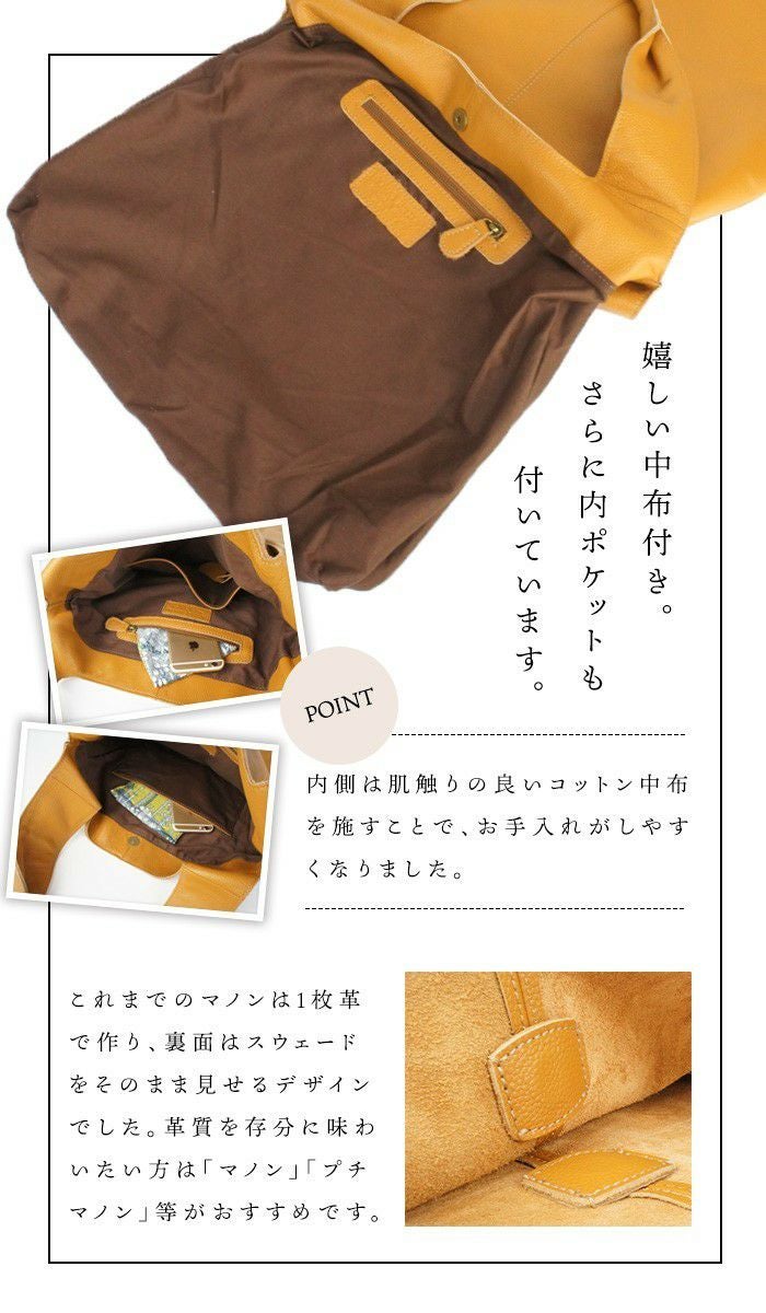 他の画像を見る 人気のくったりトートバッグ。マノンの中生地付きがこちらのグランド・マノン・プラスです 【人気色再入荷】グランド・マノン・プラス 本革 トートバッグ レディース 大きめ A4 通勤 牛革 映画・ドラマ使用 商品価格 ¥ 29,480 税込 カートに入れる お気に入りに登録する