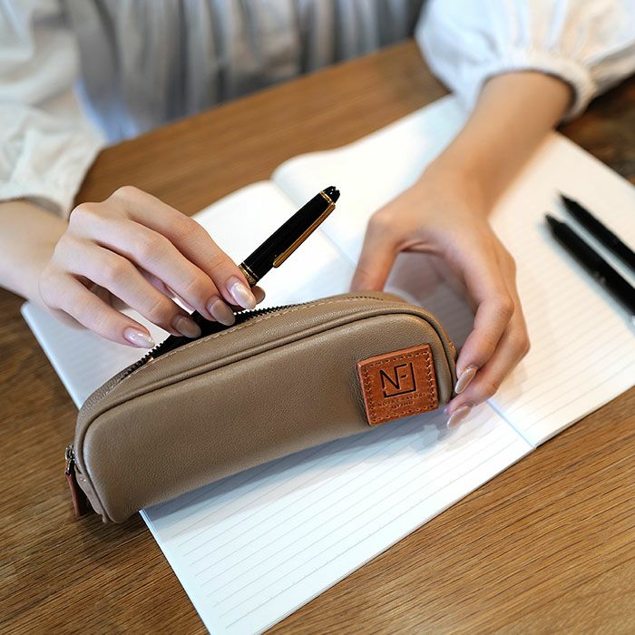 ニュアンスカラーが素敵なゴートレザーを使用した、たくさん入る丸型タイプのペンケースです。デスク周りをスタイリッシュにコーディネートしてくれます。 マルゴ・ゴート 本革 革 山羊革 ゴートレザー レザー ペンケース 大容量 筆箱 筆入れ ふで箱 ギフト プレゼント 大人 入学祝い 就職祝い 誕生日
