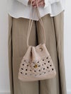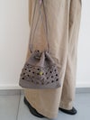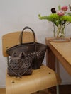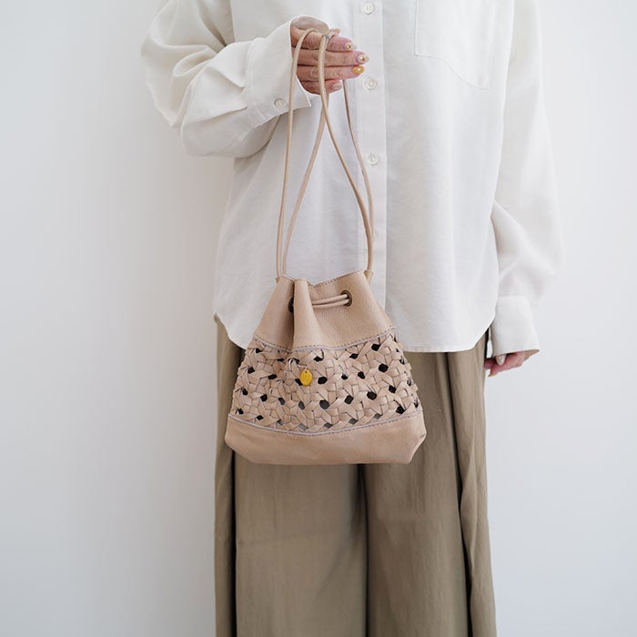 すべてが職人の手編みによるクラフト感溢れるレザーメッシュバッグシリーズ。 【新作】ルル・ミックスメッシュ メッシュバッグ かごバッグ カゴバッグ 巾着バッグ インナーバッグ バッグインバッグ レザー 本革バッグ