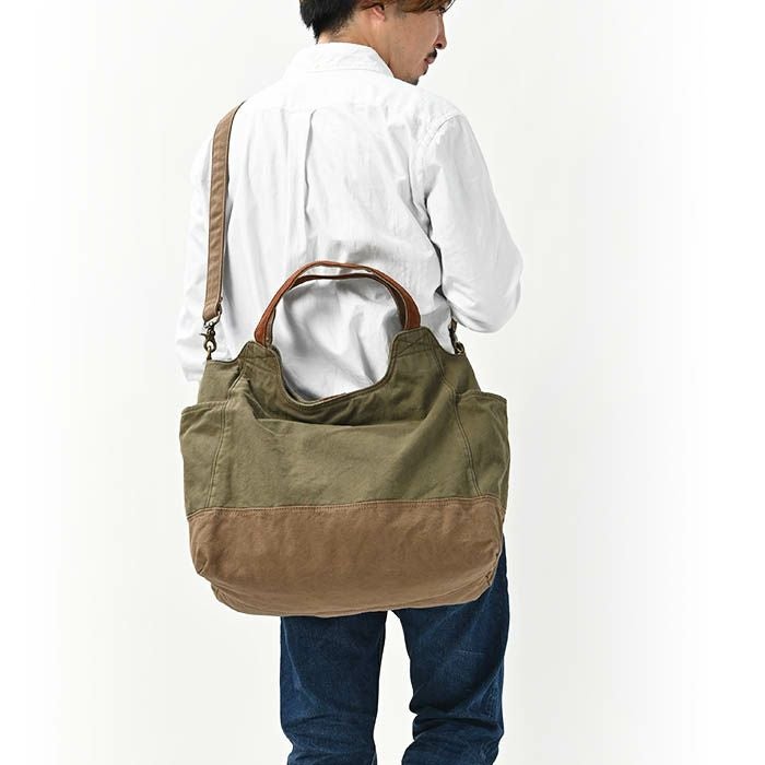 ヴィンテージ加工のこなれ感がカッコいい大容量キャンバストートバッグ。アウトドアにも。 メンズ グランド・ブリュノ 大容量 キャンバス トートバッグ 2WAY 斜めがけ キャンプ