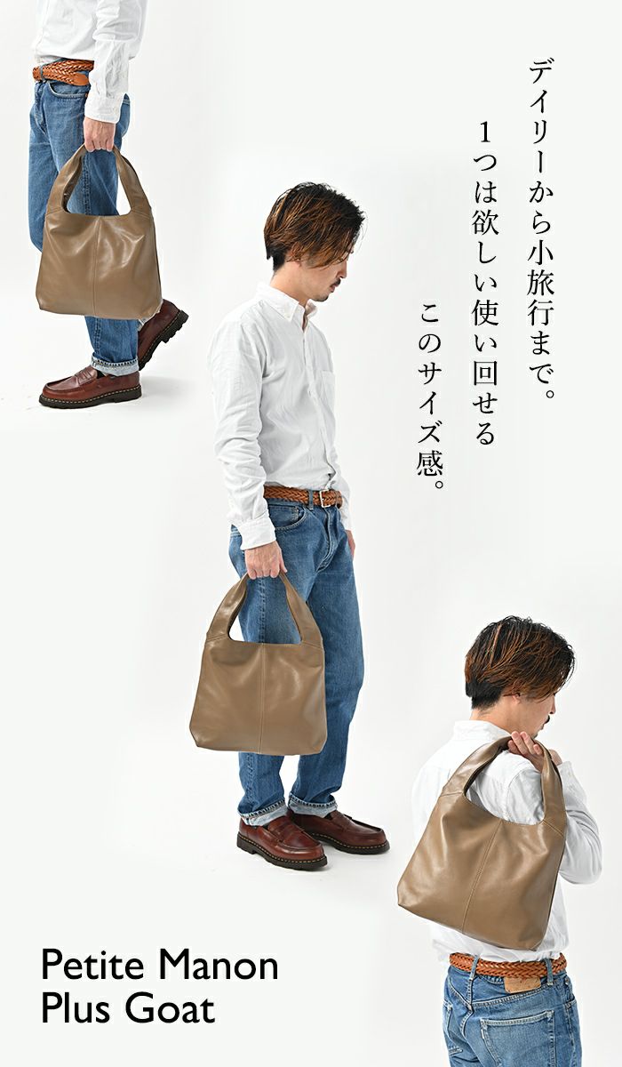 他の画像を見る 人気のトートバッグ マノンシリーズからミニサイズ。プチマノンを軽い山羊革で。 メンズ プチ・マノン・プラス・ゴート レザーバッグ トートバッグ 革 小さめ 軽い Men's 商品価格 ¥ 31,680 税込 カートに入れる お気に入りに登録する