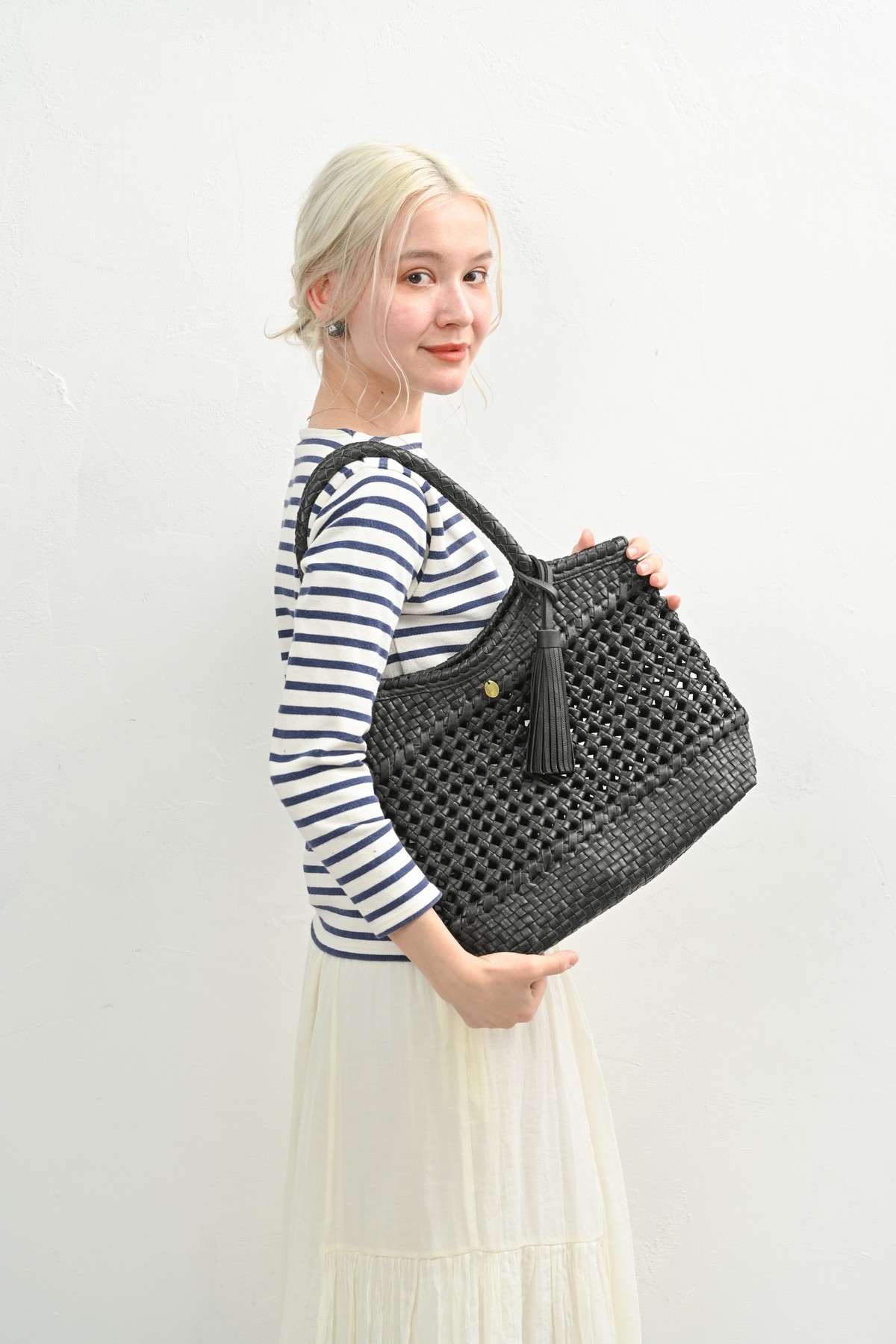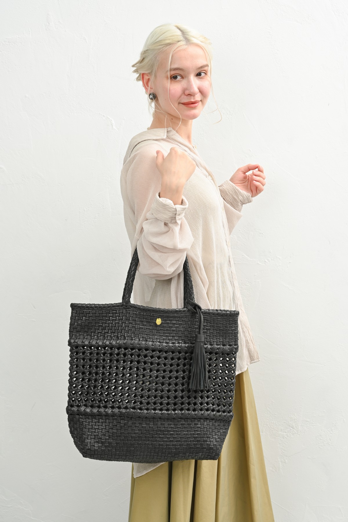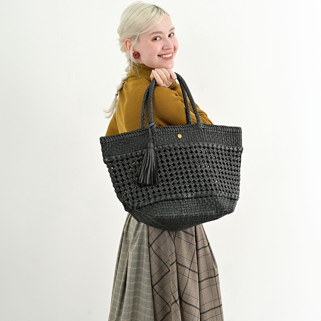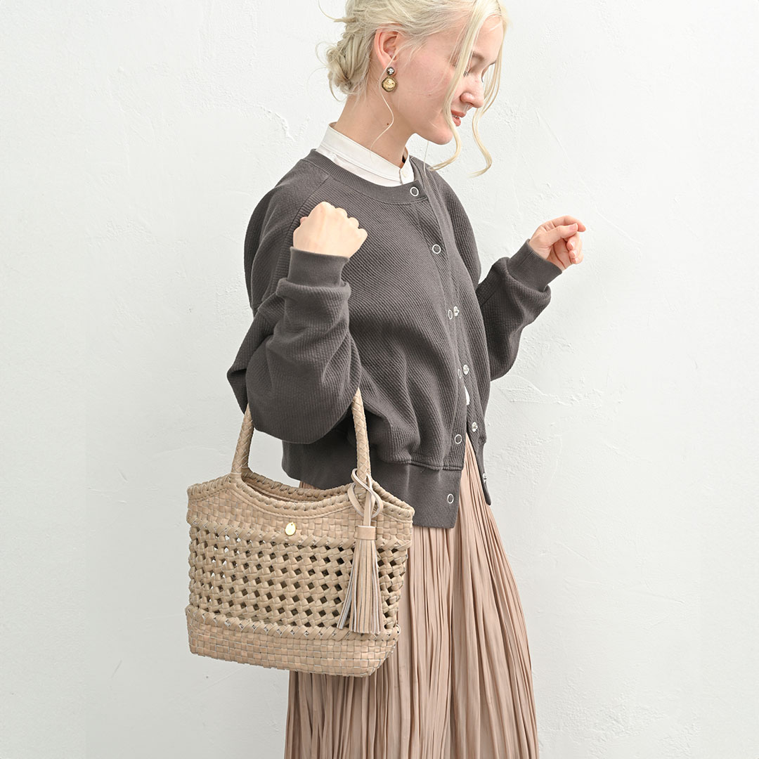 軽やかに寄り添う、レザーメッシュバッグ