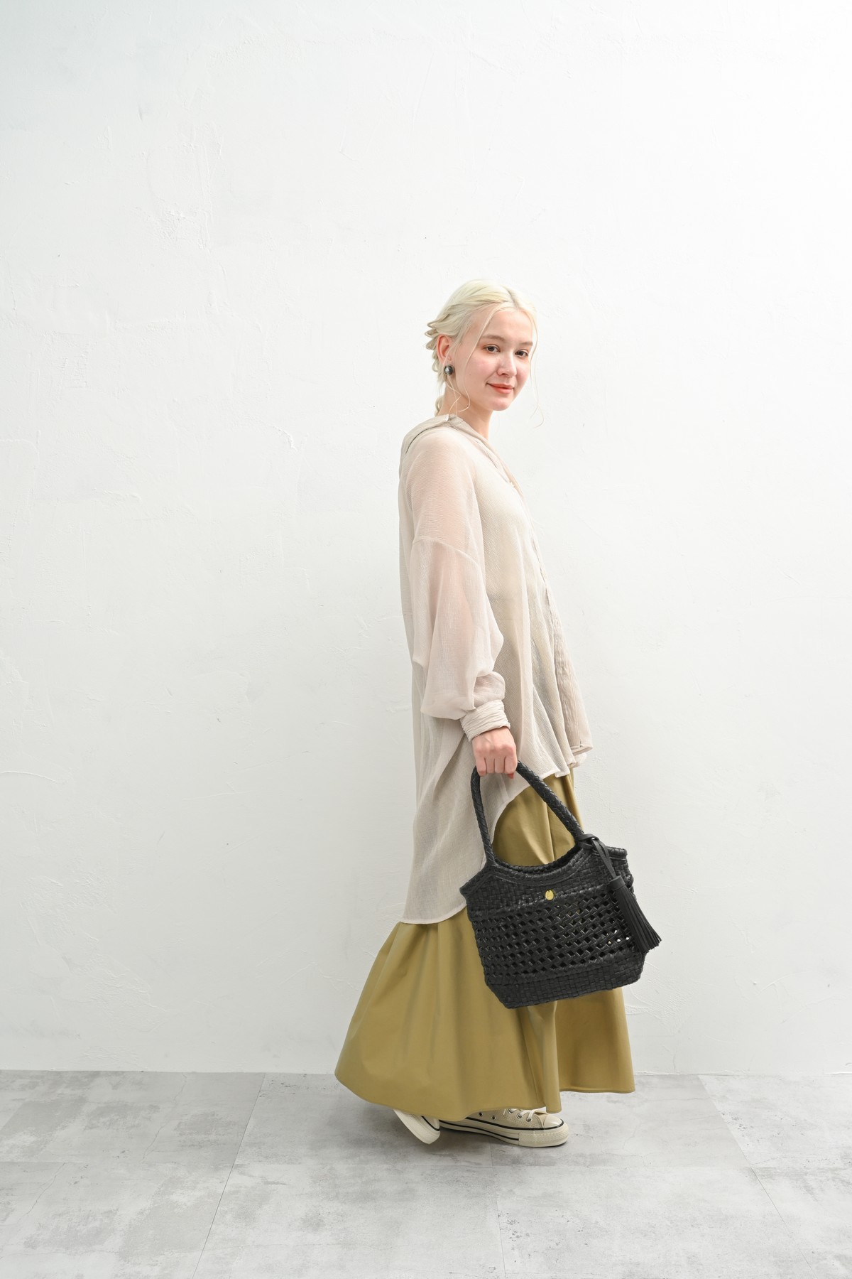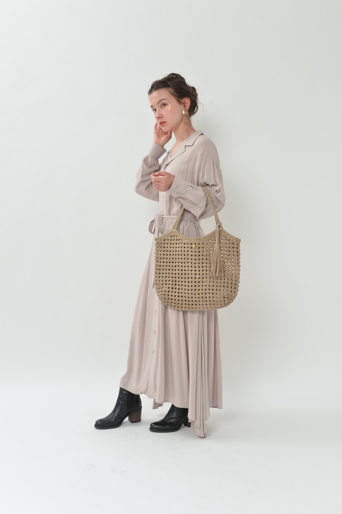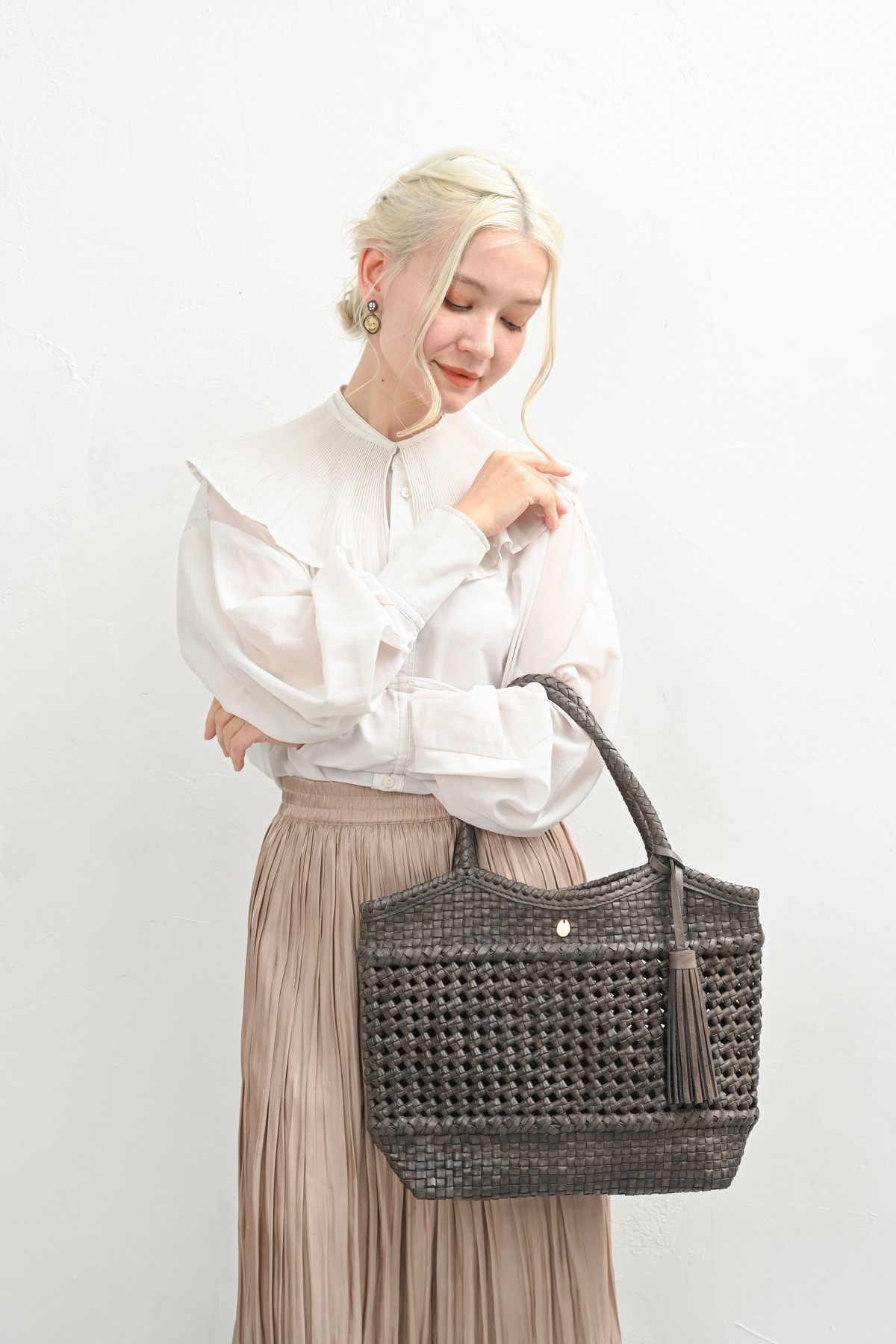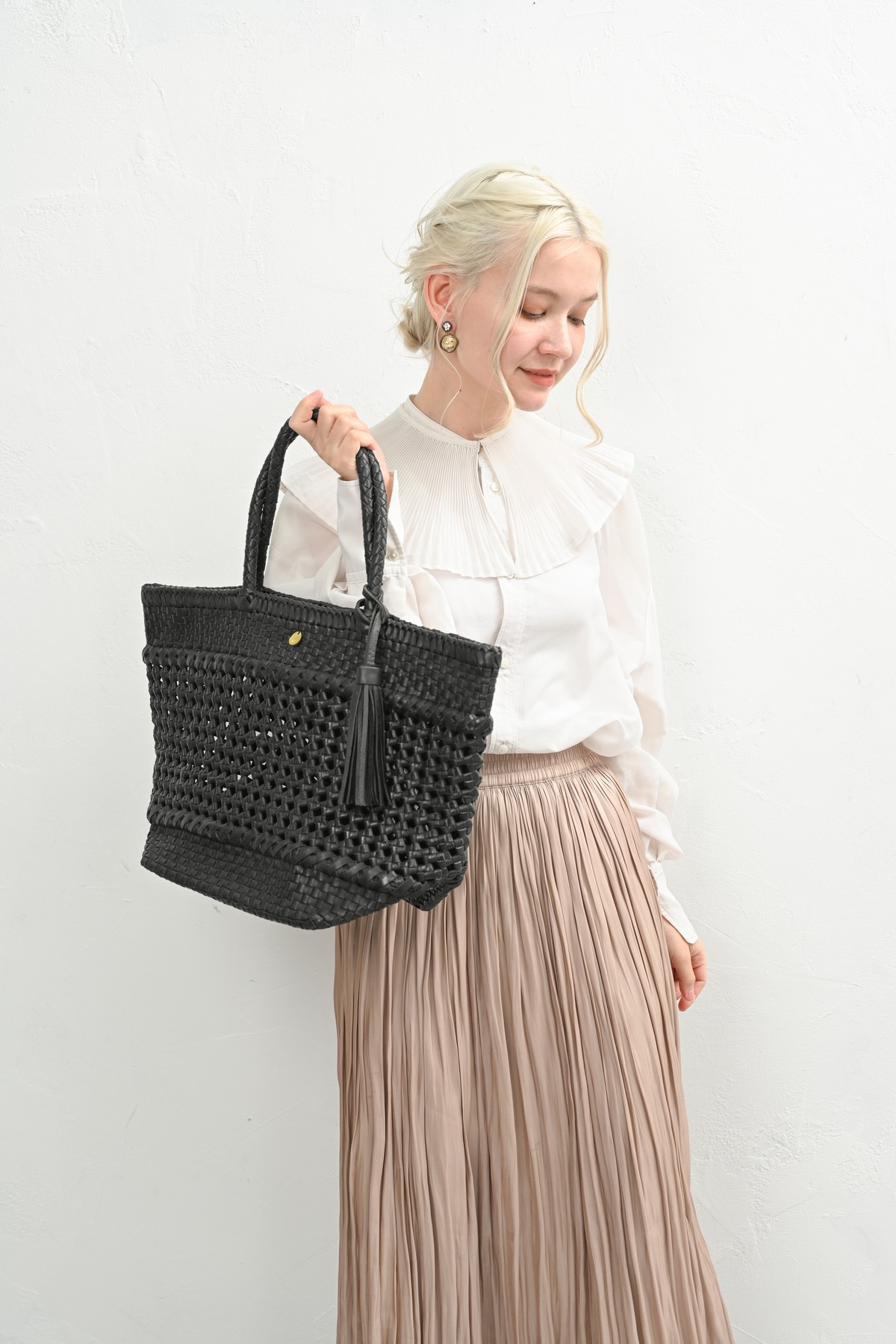 軽やかに寄り添う、レザーメッシュバッグ