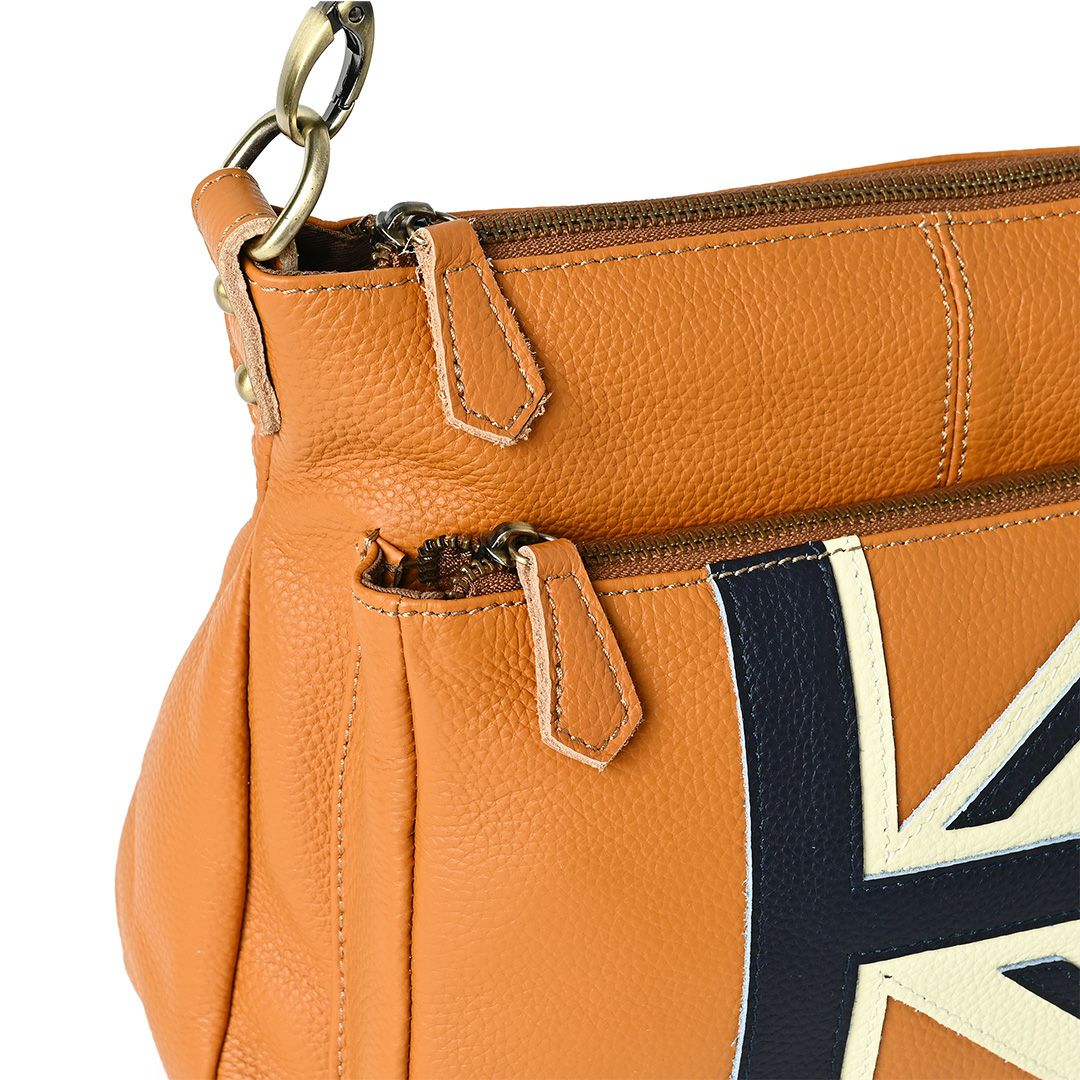 レディース本革ボディバッグ「ジル」は、軽量ながらも外ポケット2つ・内ポケット多数備え、荷物の整理力が抜群。ユニセックスなデザインだから通勤〜旅行まで家族で使える上質な本革バッグです。