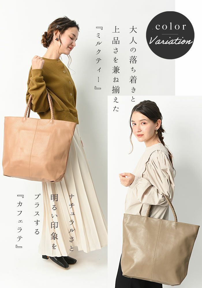 曲線が美しい、ふっくらとしたハンドルが肩に優しいトートバッグ。 バッグ内を大きく2室に区切ることで、オフィシャルとプライベートなど分けて収納できると人気。別売のショルダーベルトで2Wayでもご利用いただけます。