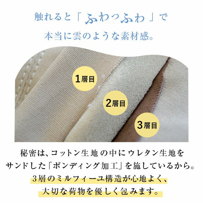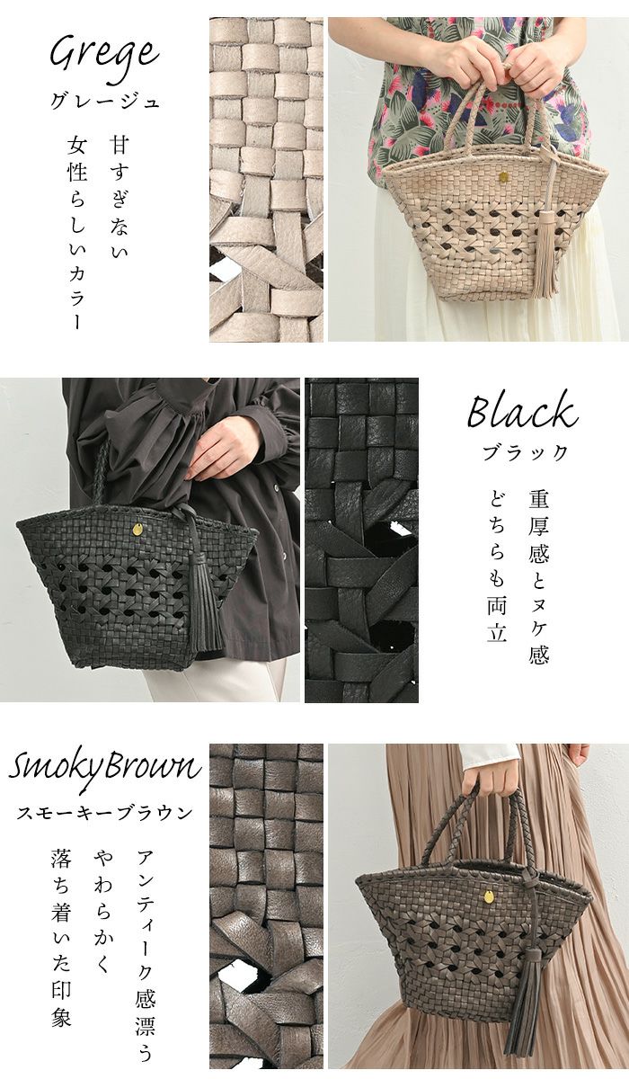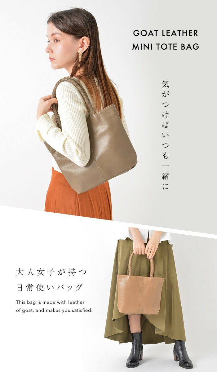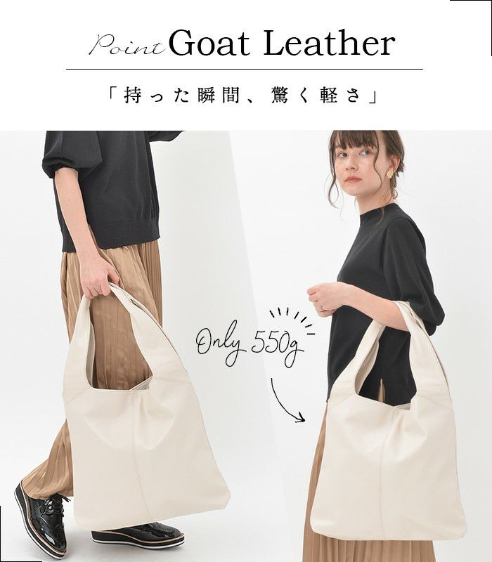 荷物の量やお出かけのシーンごと、またお好みの質感や手触りによって「牛革」や「山羊革」などお選びいただけます。 -