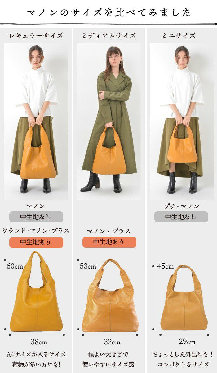 肌に馴染む柔らかな革が人気のミディアムトートバッグ。 マノンの「くったり」感はそのままに、ハンドル部分を縫い込み、内布を付けたことで、より上品になりました。 通勤からお買い物、普段使いまで、季節ごとに色を替え、母娘・ご夫婦でシェアしたりと幅広くお使いいただける人気の本革トートバッグ。 -