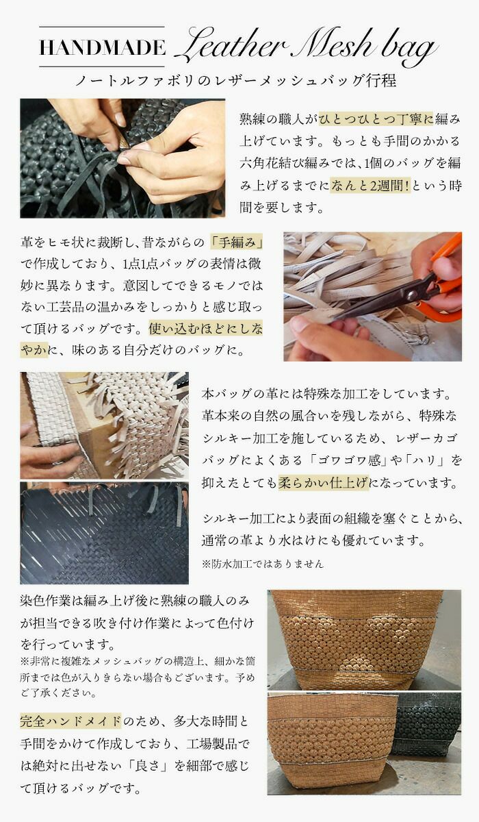 ノートルファボリでは長くご愛用頂けるよう、天然皮革をふんだんに使用したバッグを数多くご用意しています。