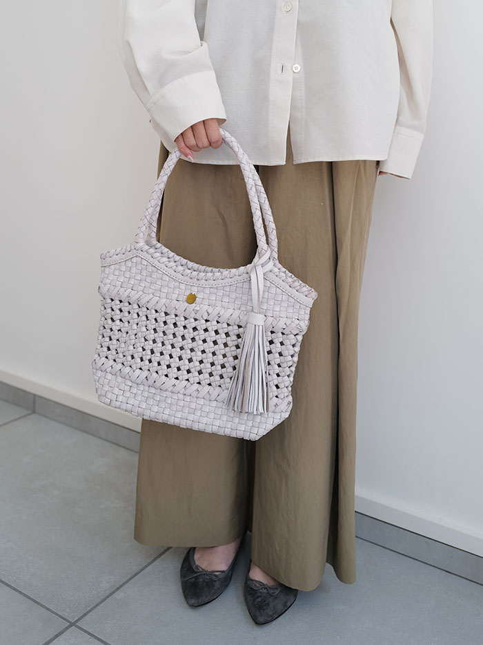 ■商品名:【ハンドメイド製品】 本革 メッシュ トートバッグ かごバッグ 【プチ・ミラベル・MIXメッシュ】 レディース カゴ メッシュバッグ 本革バッグ 革 ミニトート レザー バッグ 花結び編み 花編み 石畳編み