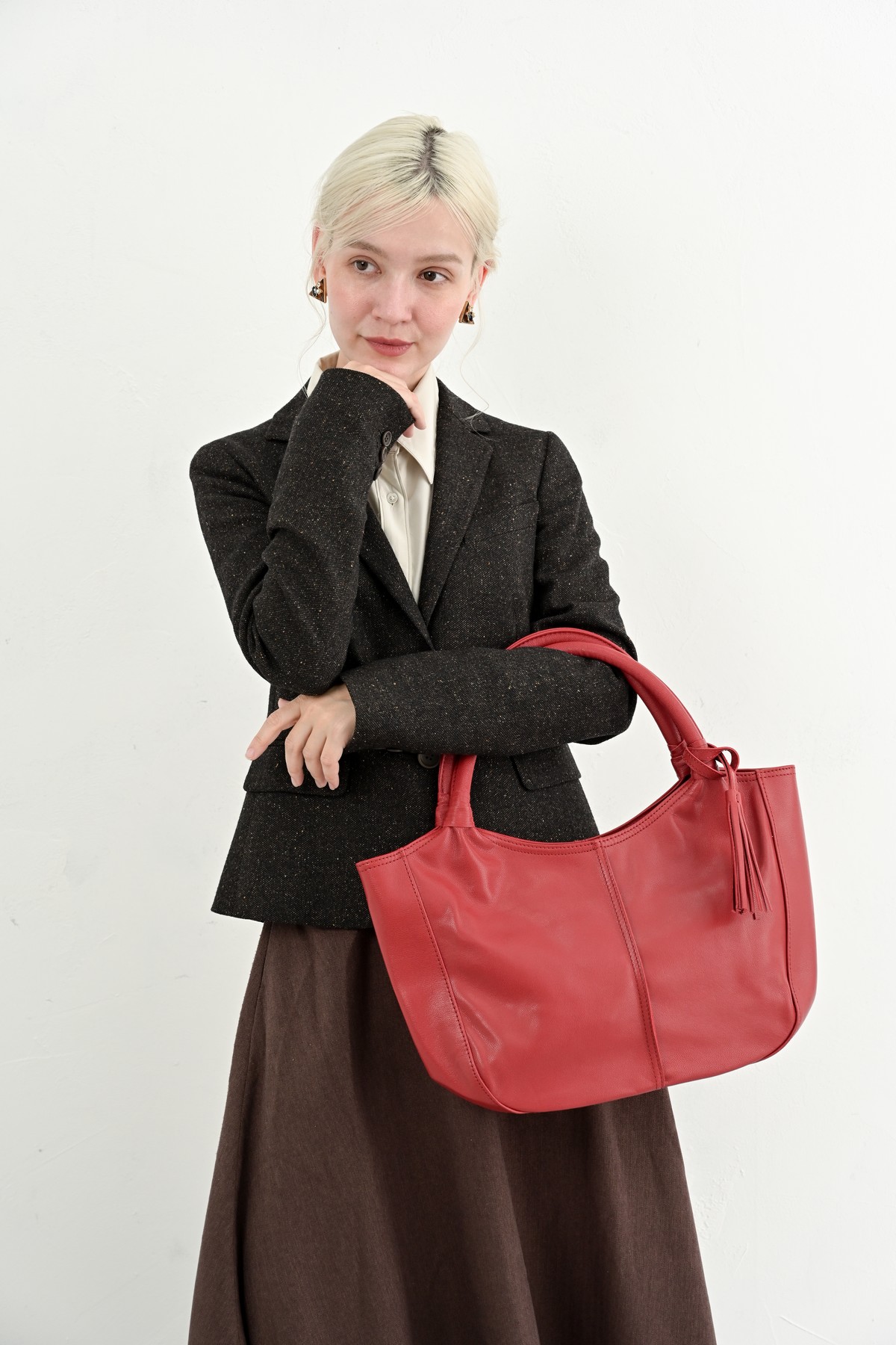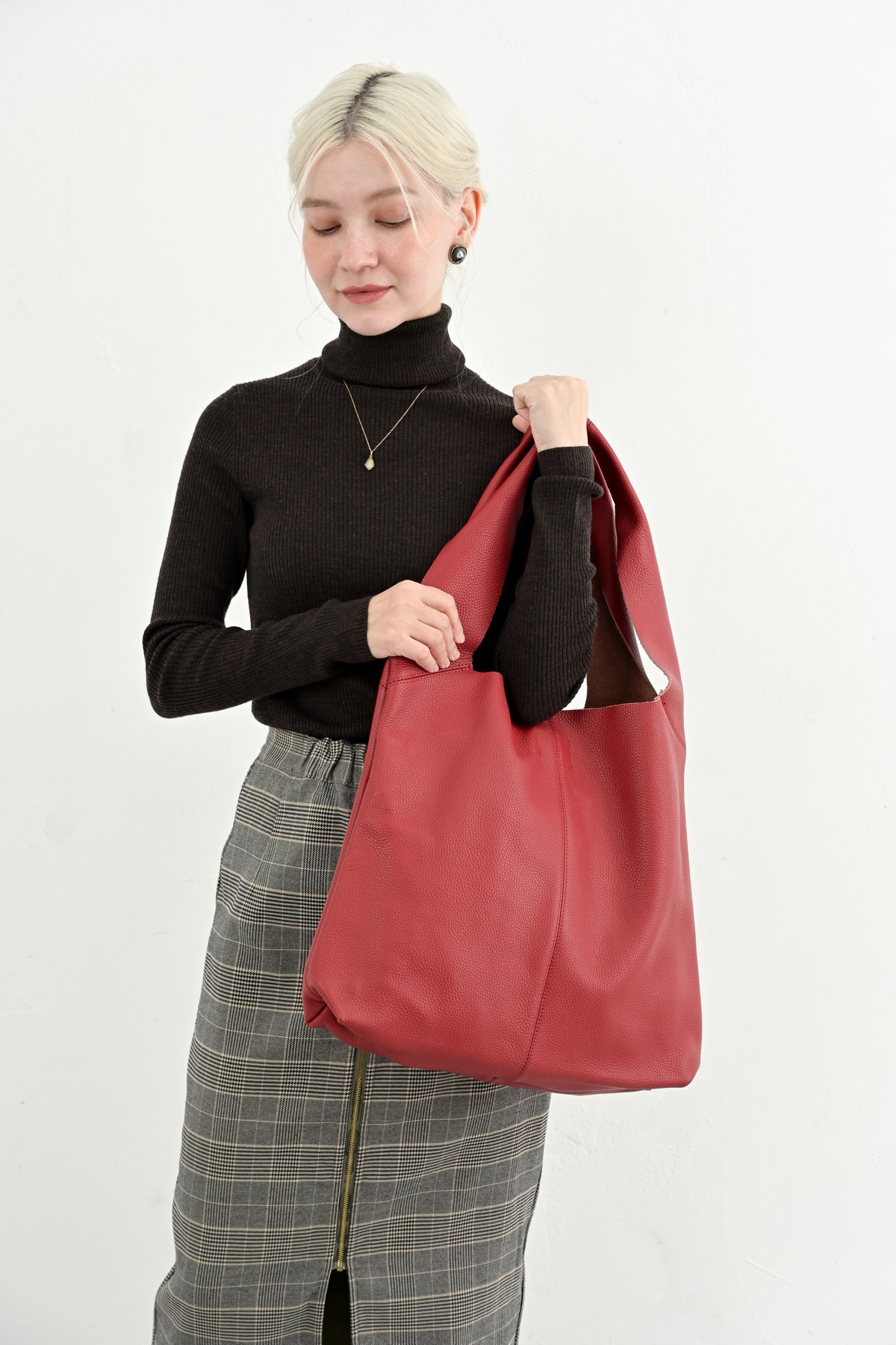 秋とレザーバッグの組み合わせは、高級感と上品さ、重厚感でベストマッチ。