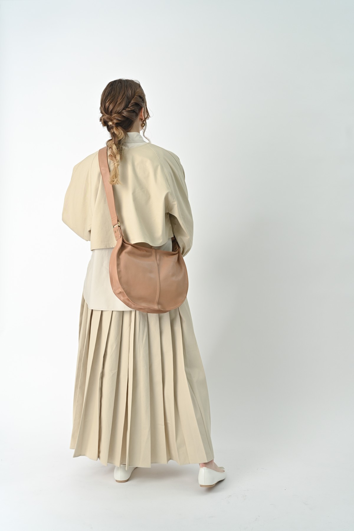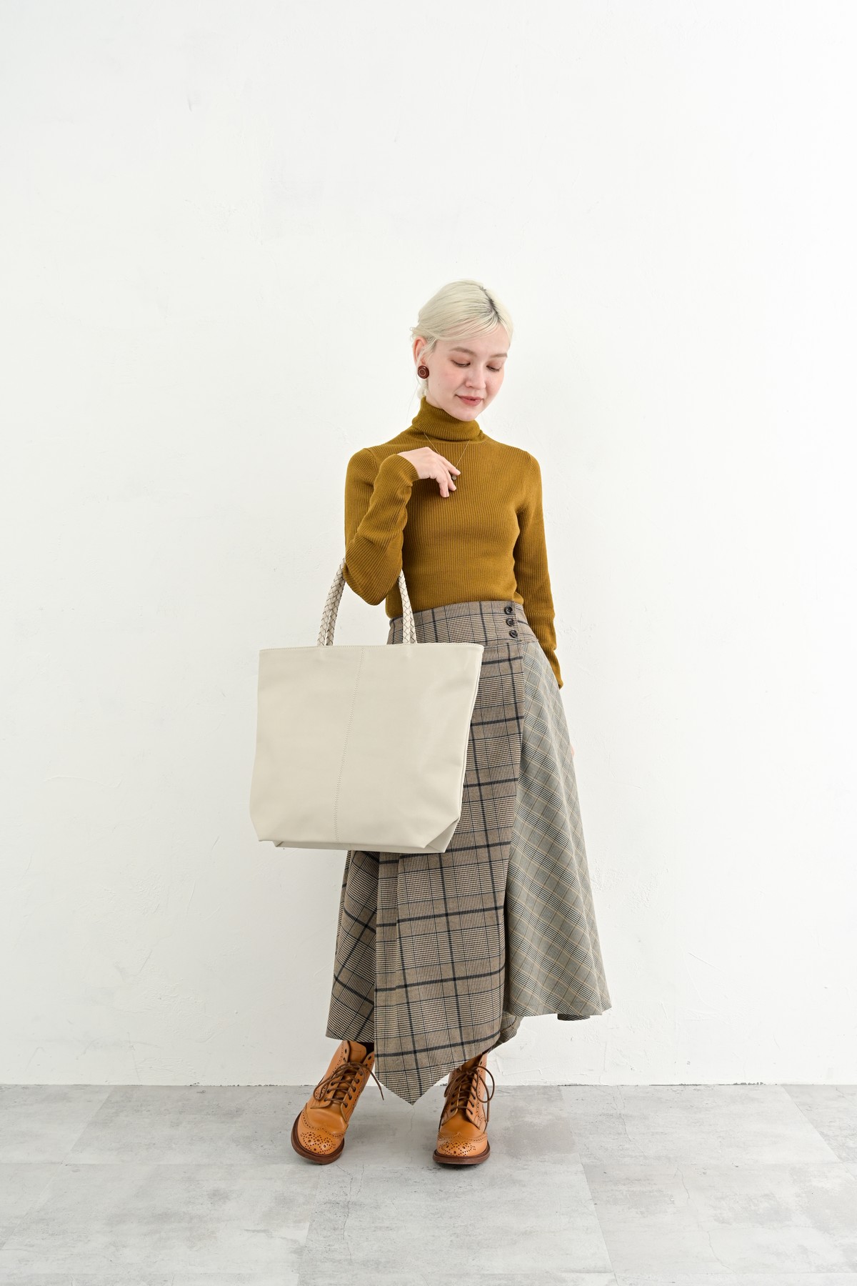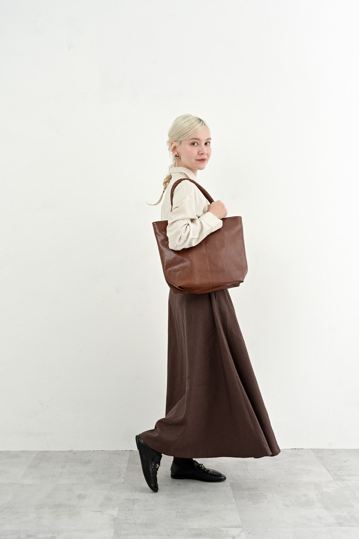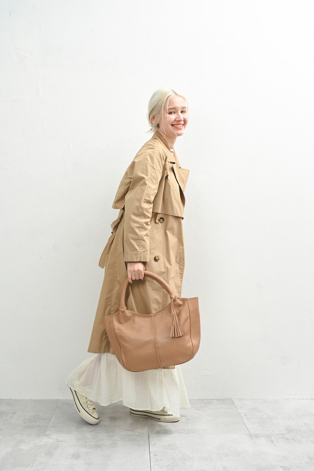 編み込まれたレザーが秋の空気にしっとりと溶け込み、