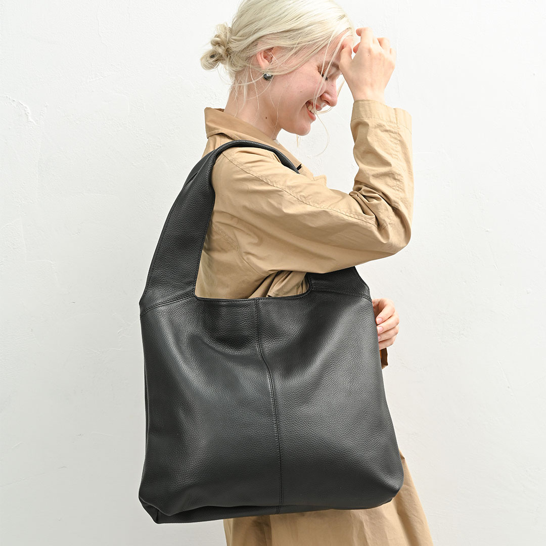 軽くて丈夫なゴート革のバッグなら、多少荷物が増えても大丈夫。