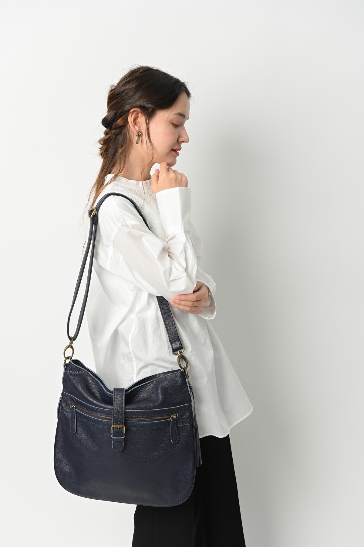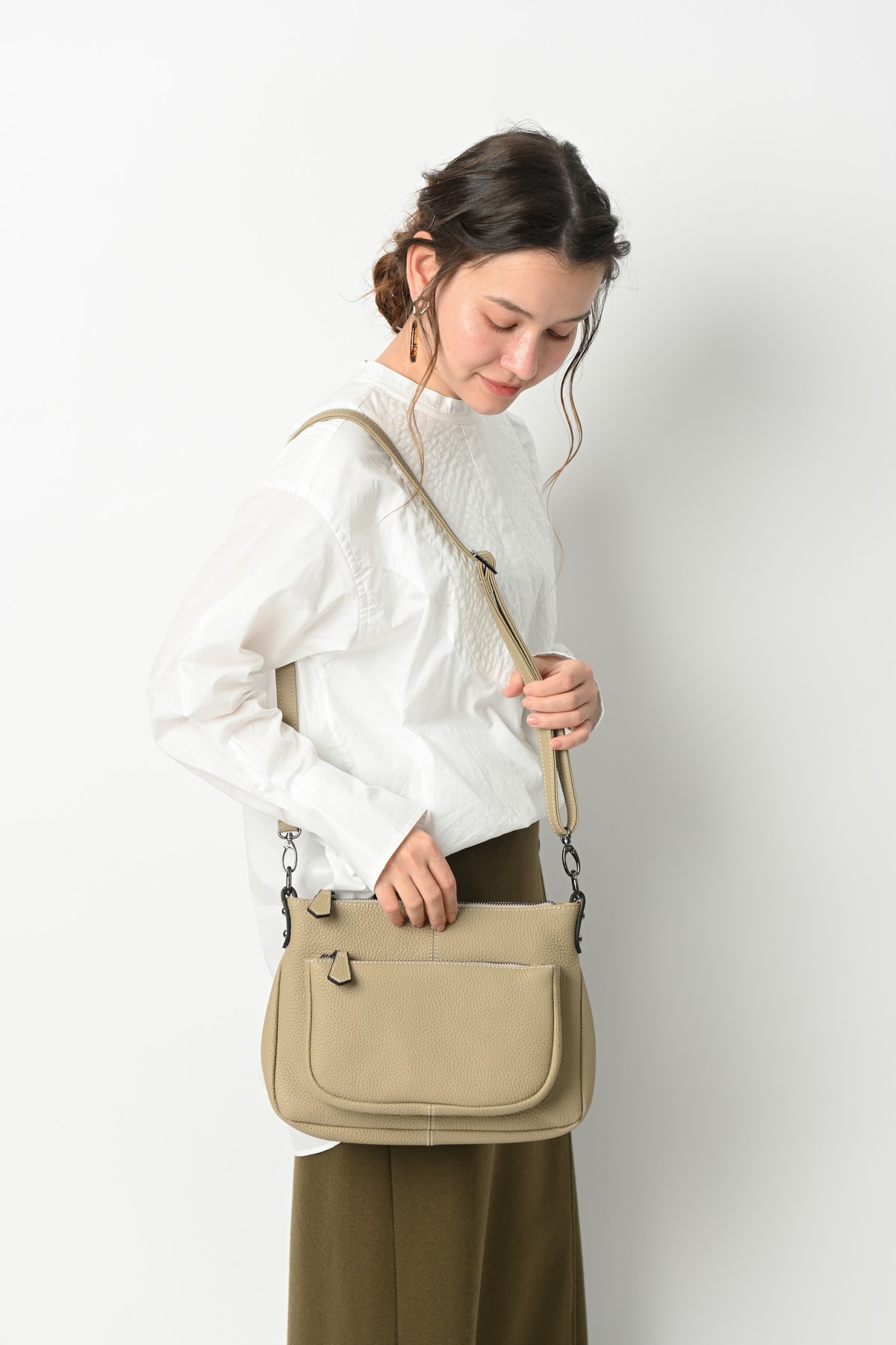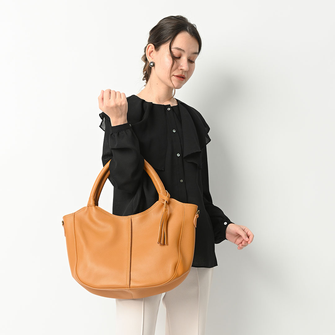 ひとつのバッグで何通りもの使い方ができるバッグなど、様々なファッションに寄り添うデザインです。 シンプルだけど品がある、レザーのもつ高級感を生かしたデザインは、普段使いからフォーマルな シーンまで幅広くご利用いただけます。