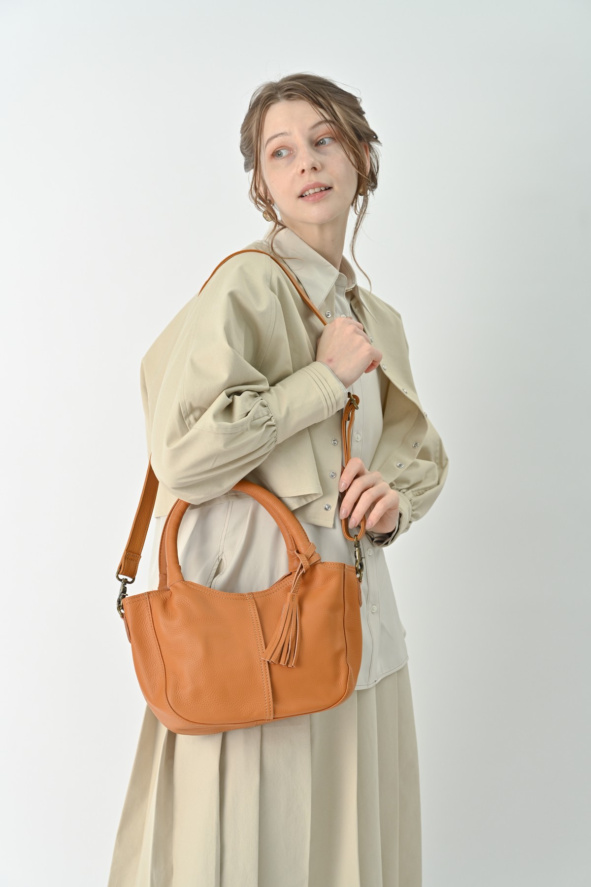 落ち着いた秋の気配にしっくりくる本革バッグ。