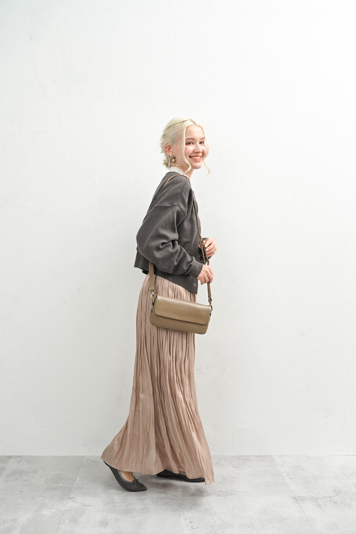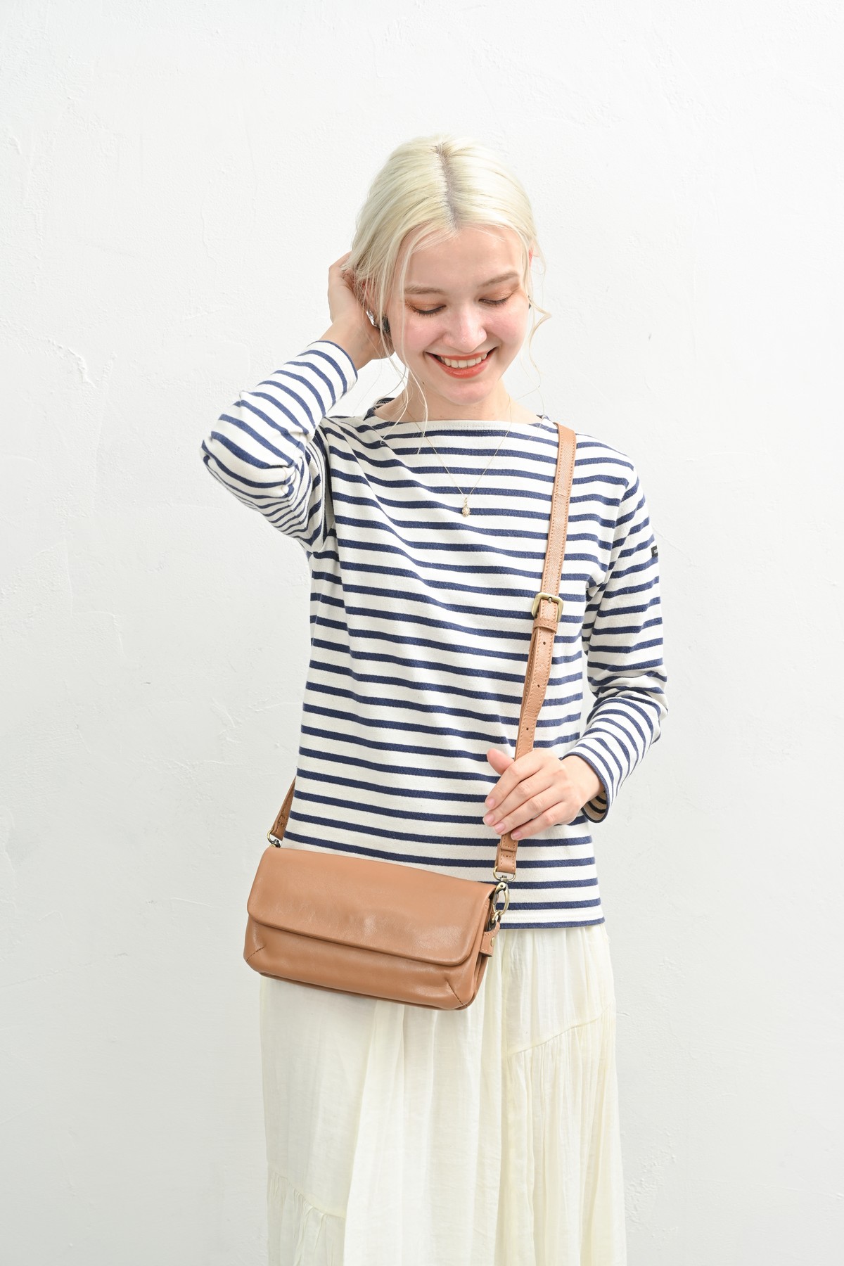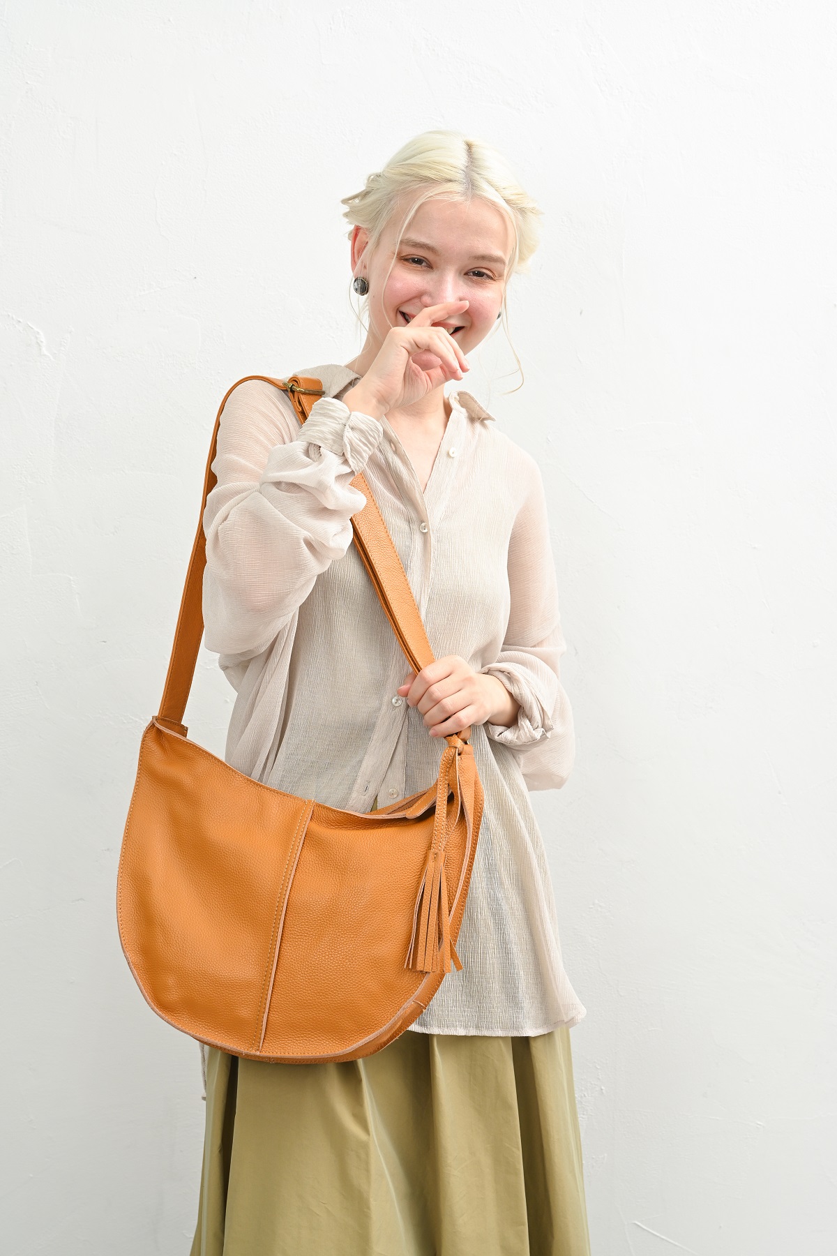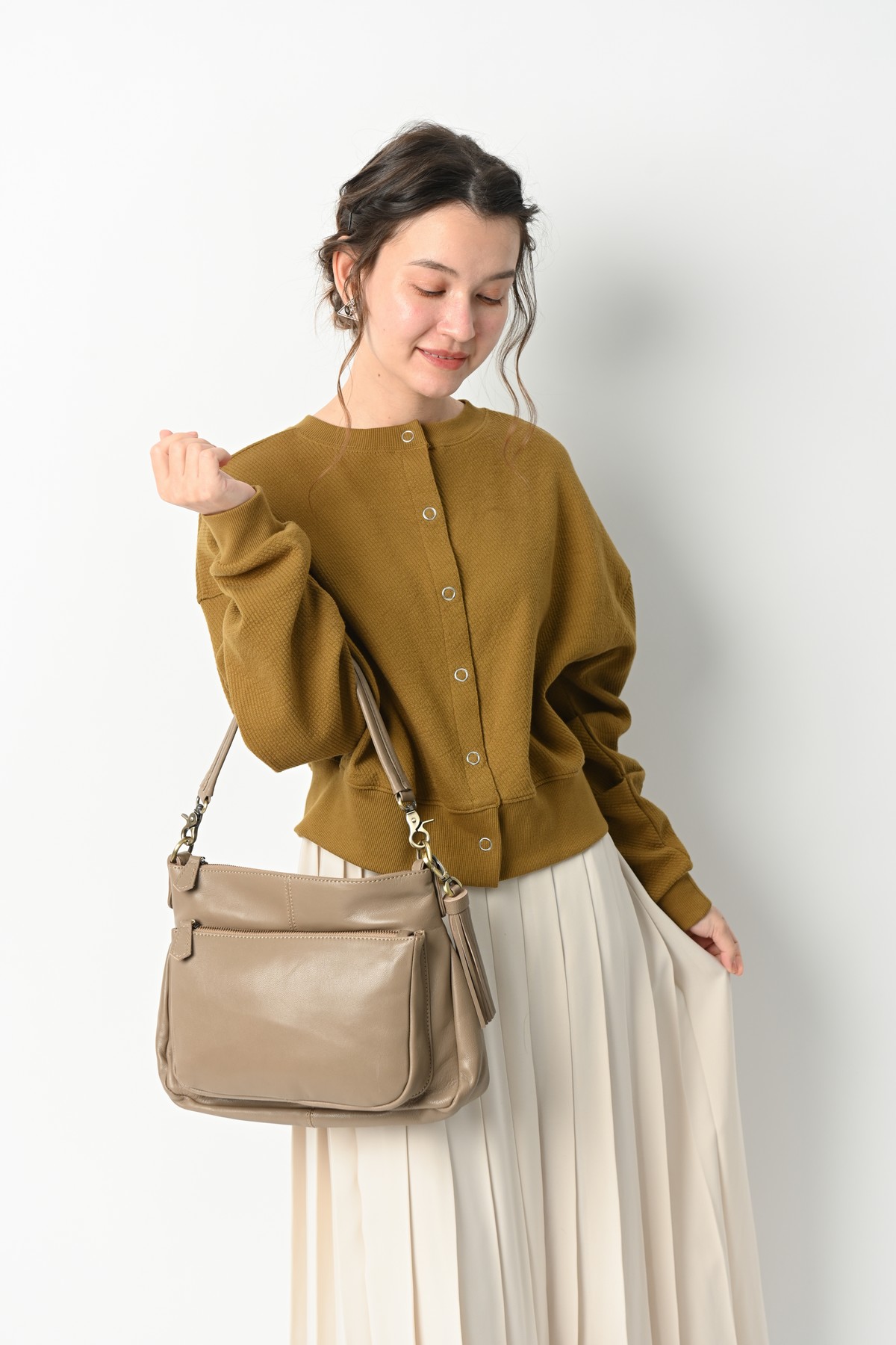 ナチュラルで大人っぽいレザーは良く似合う。