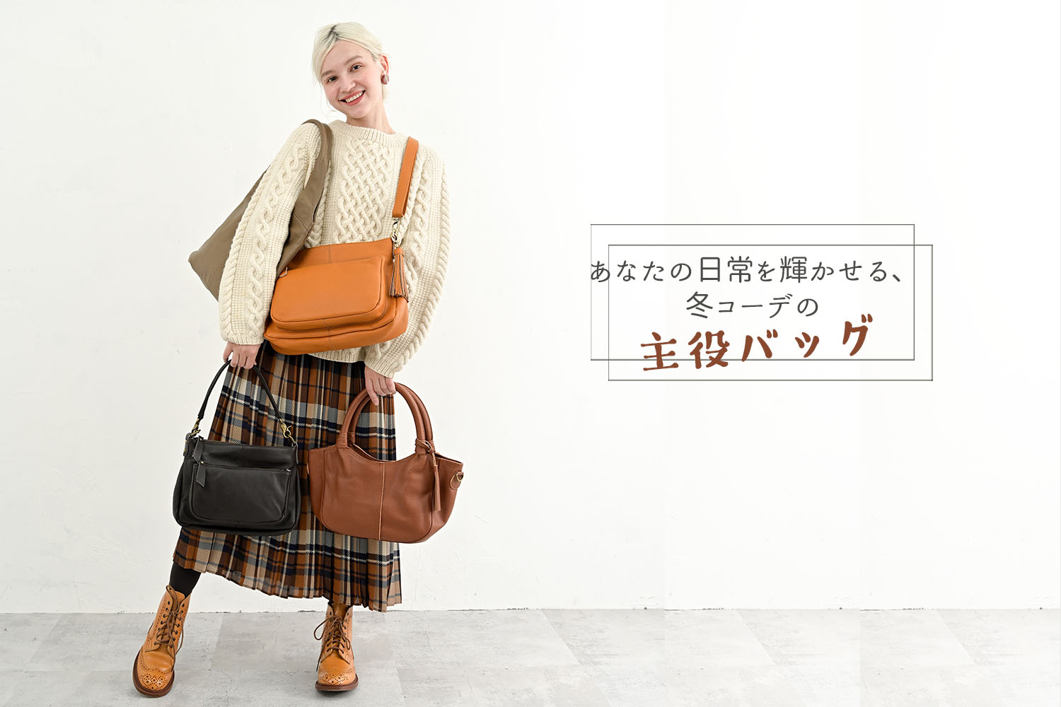 ぬくもりを感じる冬のレザーバッグ。