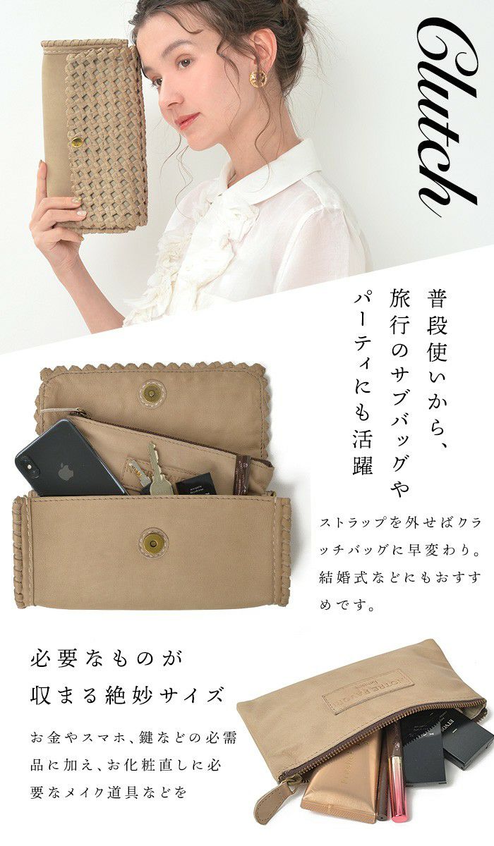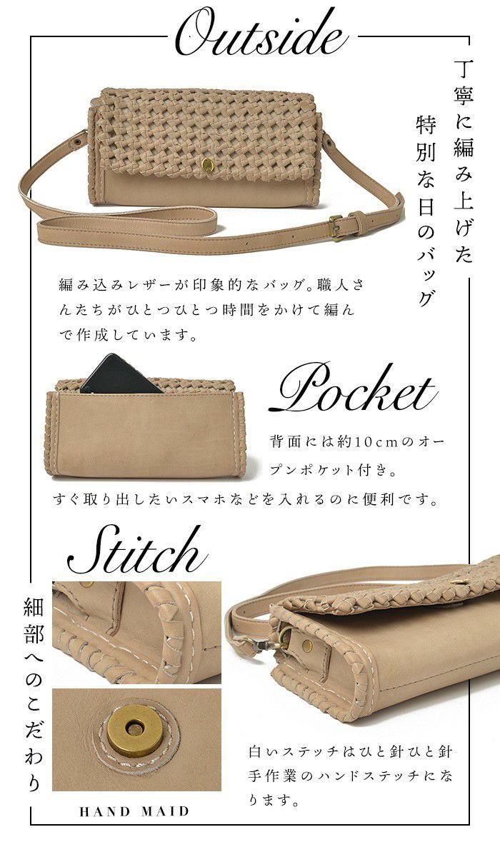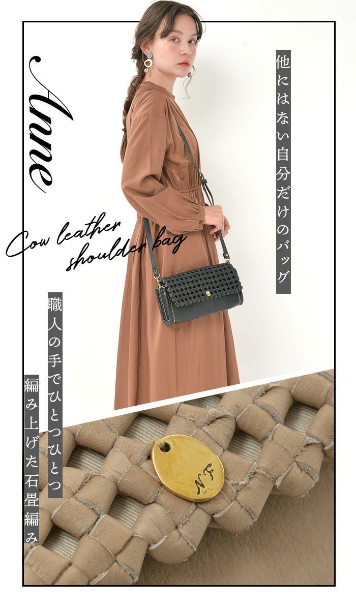 他の画像を見る すべてが職人の手編みによるクラフト感溢れるレザーメッシュシリーズ。 アンヌ ハンドメイド 本革 メッシュ編み お財布ポシェット 2WAY ショルダーバッグ 商品価格 ¥ 45,980 税込 カートに入れる お気に入りに登録する