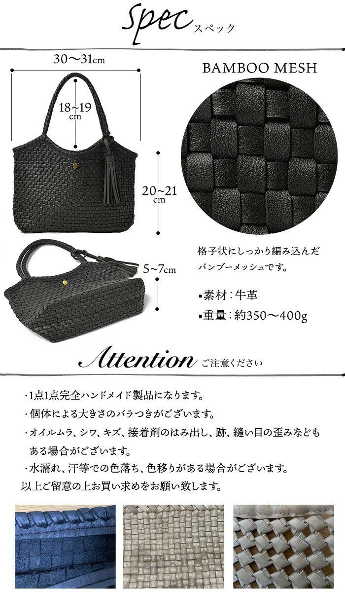他の画像を見る すべてが職人の手編みによるクラフト感溢れるレザーメッシュトートバッグシリーズ。 ライザ バンブーメッシュ 竹編み レザー トートバッグ メッシュバッグ かごバッグ 商品価格 ¥ 44,880 税込 カートに入れる お気に入りに登録する
