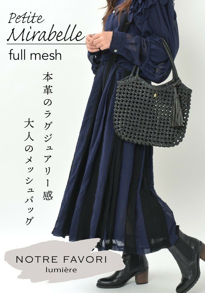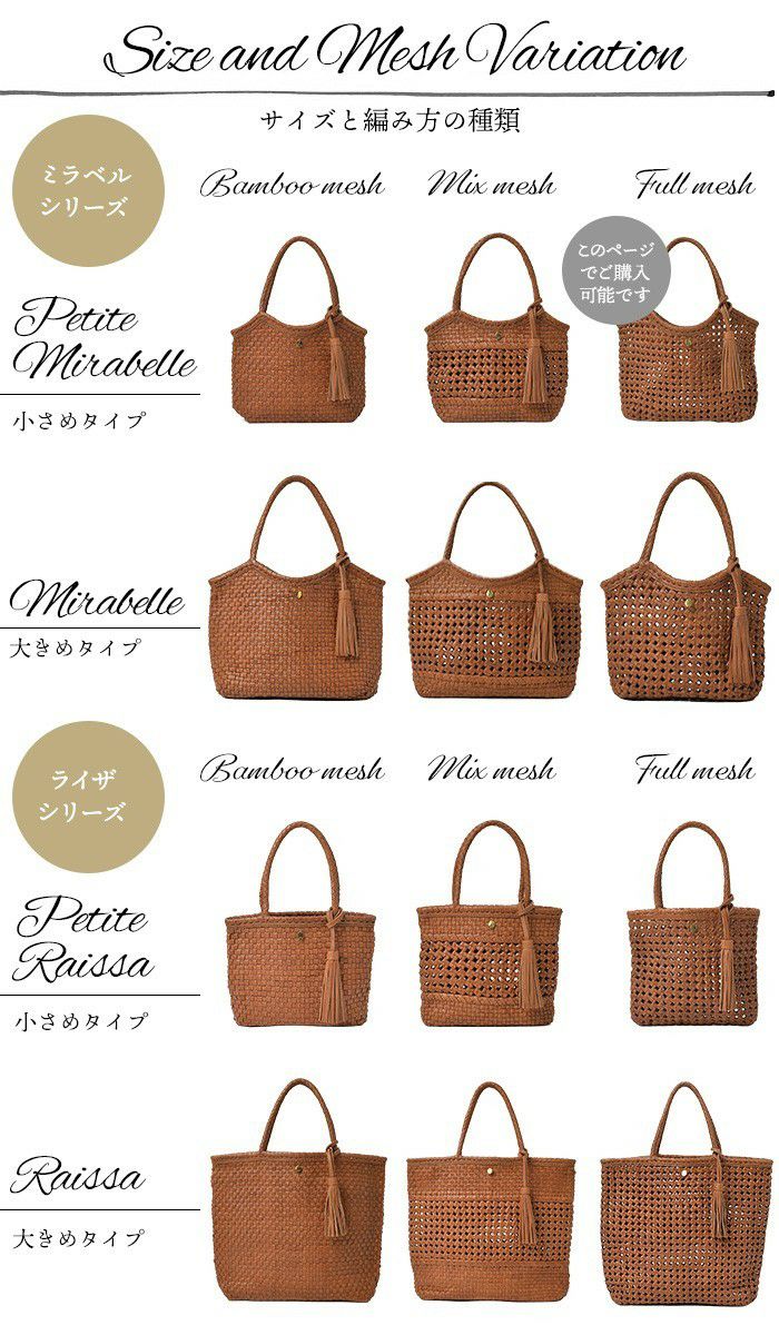 他の画像を見る すべてが職人の手編みによるクラフト感溢れるレザーメッシュトートバッグシリーズ。 【完売色再入荷】プチ・ミラベル・ミックスメッシュ 本革 メッシュバッグ かごバッグ トートバッグ レザー 商品価格 ¥ 39,380 税込 カートに入れる お気に入りに登録する