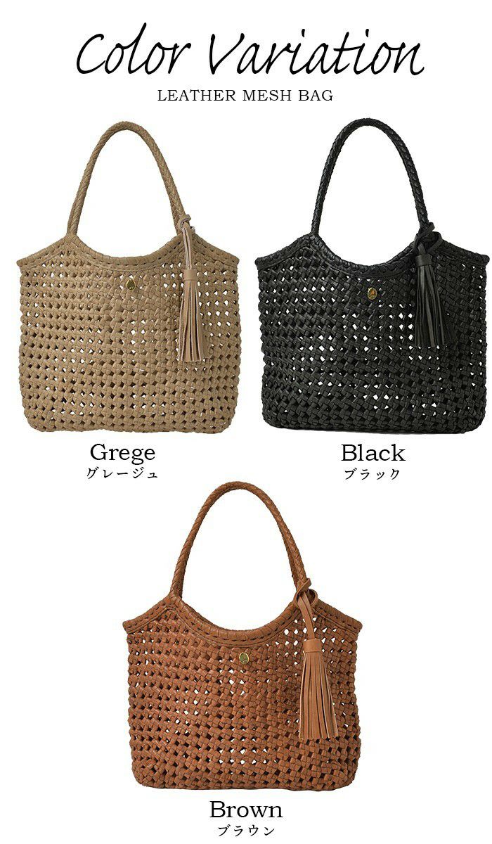 他の画像を見る すべてが職人の手編みによるクラフト感溢れるレザーメッシュトートバッグシリーズ。 【完売色再入荷】ミラベル・ミックスメッシュ メッシュバッグ トートバッグ かごバッグ 本革 レザー 人気商品 商品価格 ¥ 48,180 税込 カートに入れる お気に入りに登録する