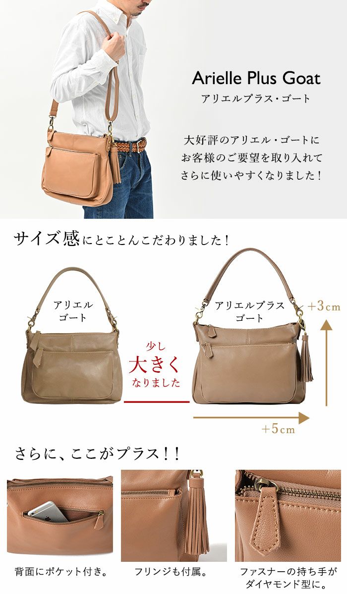 他の画像を見る ギフトでも人気の高い アリエル・プラスを軽くて丈夫な山羊革で仕上げました。 【人気色再入荷】メンズ アリエル・プラス・ゴート レザー ショルダーバッグ 斜めがけ 通勤 ギフト Men's ギフト人気 商品価格 ¥ 41,580 税込 カートに入れる お気に入りに登録する